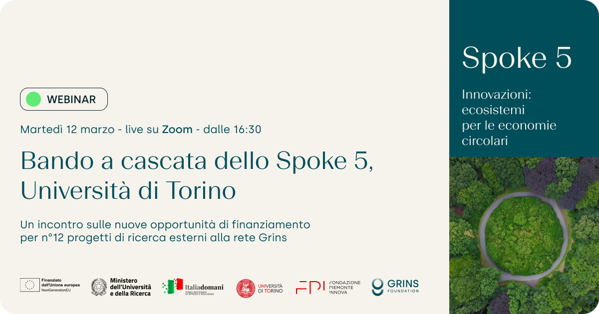 L'incontro pubblico del 12 marzo ha lo scopo di presentare il progetto Grins e le attività dello Spoke 5, il gruppo di lavoro in cui si inseriranno i nuovi progetti di ricerca che il bando a cascata vuole stimolare.