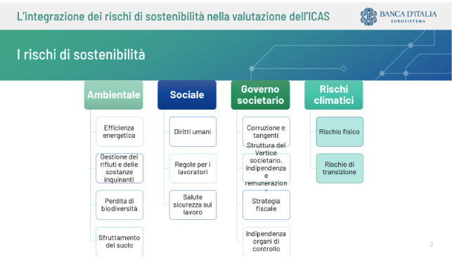 Nell’intervento della dott.ssa Raffaella Sorgente si sono anche chiariti i vari fattori di rischio legati alla sostenibilità, soffermandosi su quelli climatici e di transizione, ancora non pienamente colti dalla maggior parte delle micro e piccole imprese che hanno ruolo preponderante per il sistema Italia, sia per volume economico che muovono sia per quello legato alla forza lavoro, come sottolineato anche dalla prof.ssa Billio.