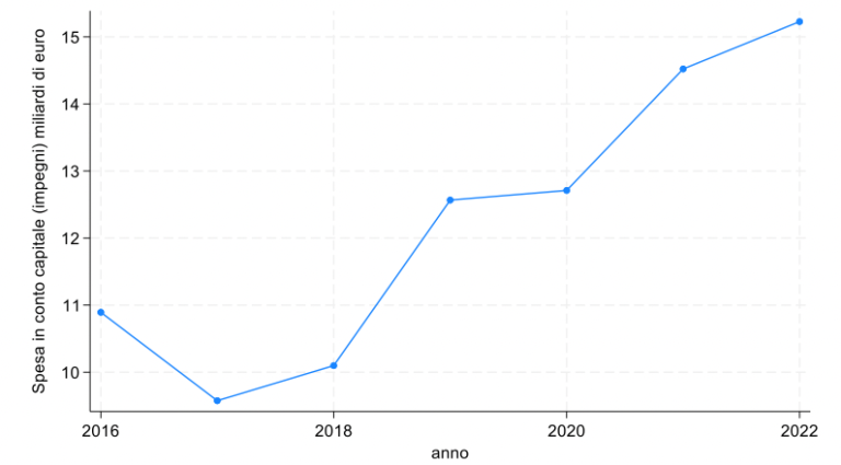 Figura 1 – Spesa in conto capitale dei comuni (2016 – 2022) miliardi di euro