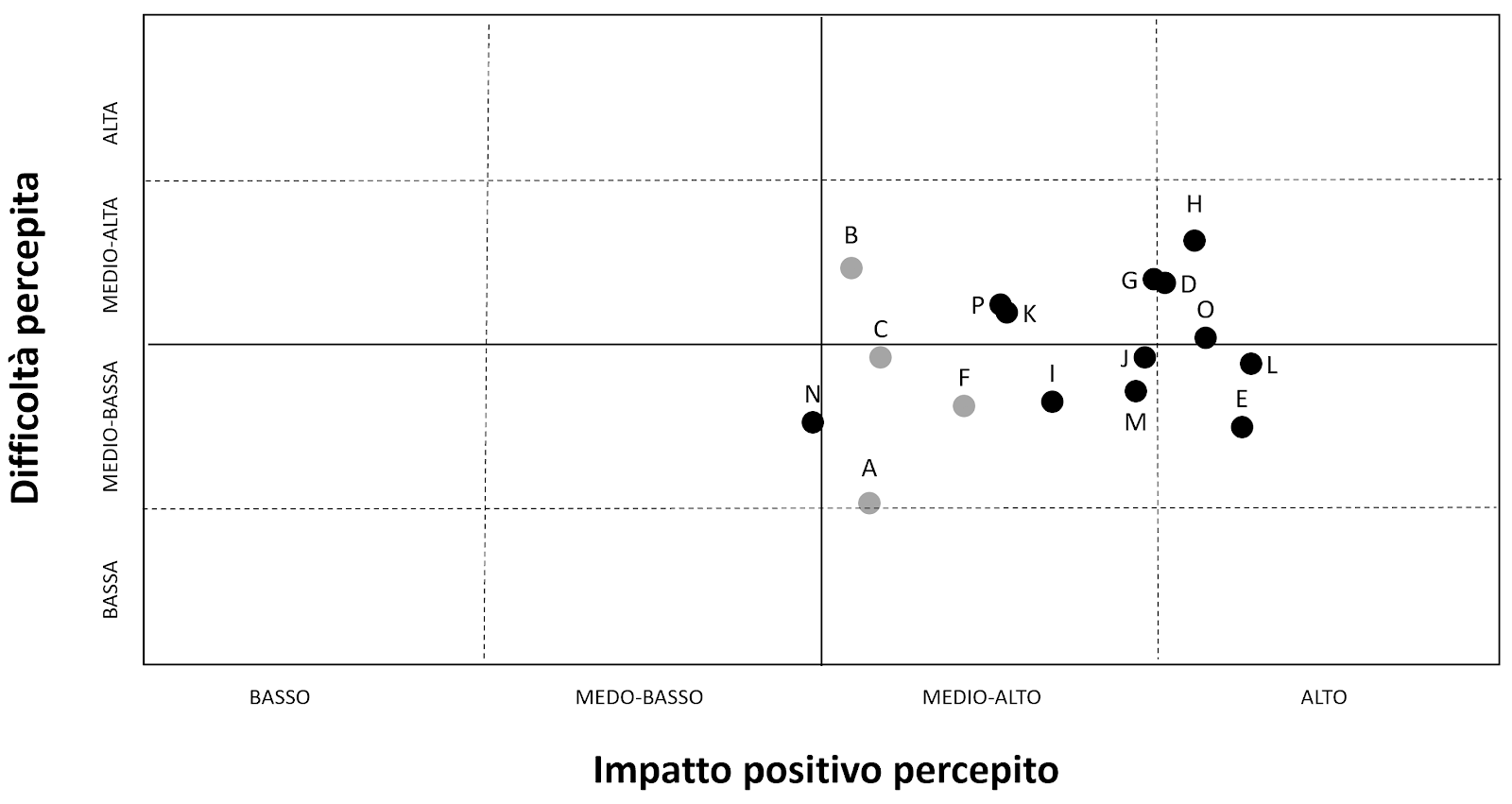 Figura 3: Matrice relativa all’impatto positivo percepito e alla difficoltà percepita