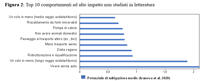 Alla luce di questa evidenza, appare quanto mai necessario spostare il focus di ricerca verso quei comportamenti che, benché difficilmente analizzabili sul piano delle scienze comportamentali, hanno un impatto notevole sull’ambiente in termini di emissioni di CO2 risparmiate nel caso fossero attuati al posto di altri comportamenti più inquinanti (ad esempio, uscire a piedi piuttosto che in auto).